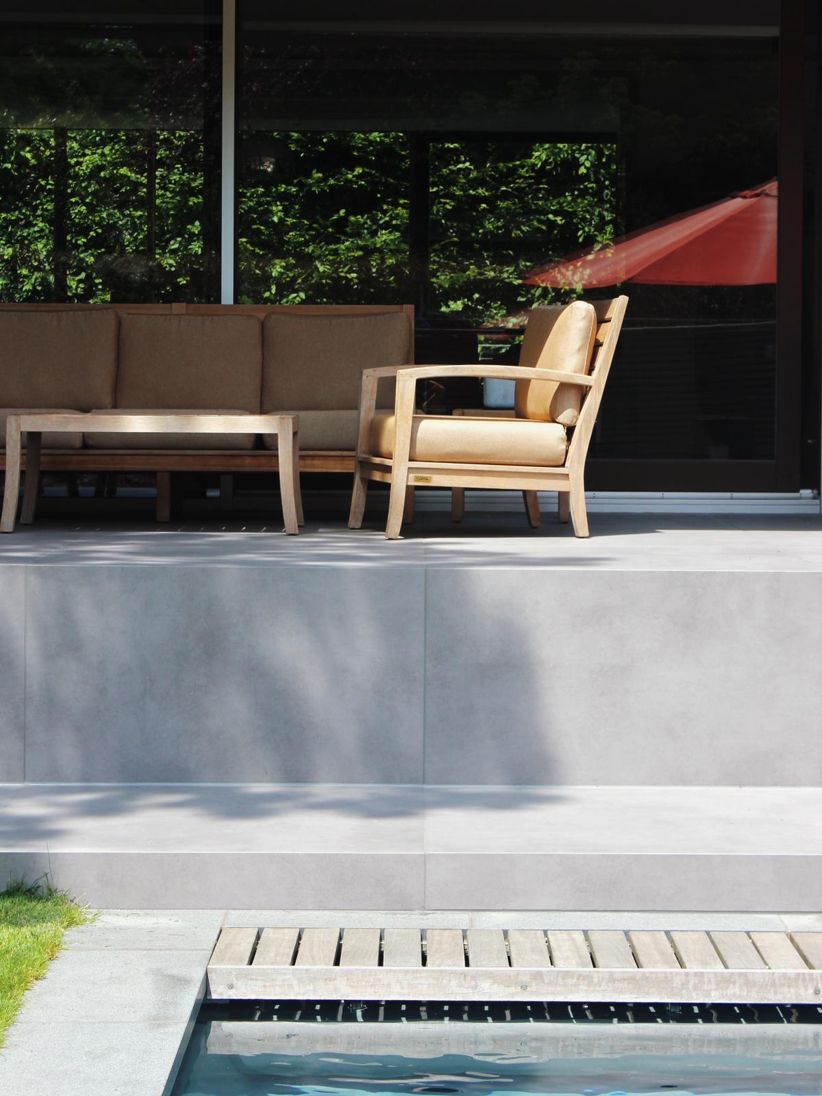 Die neue Art der Gestaltung von Außenbereichen. Leichter als Stein oder Beton, aber mit derselben Langlebigkeit und erheblich mehr Einsatzmöglichkeiten. Die unterschiedlichen Farbvariationen, insbesondere aber die großen Formate bis zu 120 x 120 cm, bieten vielfältige Möglichkeiten, Ihre Pool- und Gartenlandschaft zu designen.